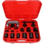 Este kit de herramientas para rótulas es adecuado para desmontar y montar rótulas de ajuste a presión sin necesidad de desmontar el brazo de control del vehículo. Este juego incluye todos los tubos receptores esenciales y los adaptadores de extracción/instalación para las rótulas superiores e inferiores de ajuste a presión en la mayoría de los automóviles, furgonetas y camiones ligeros.