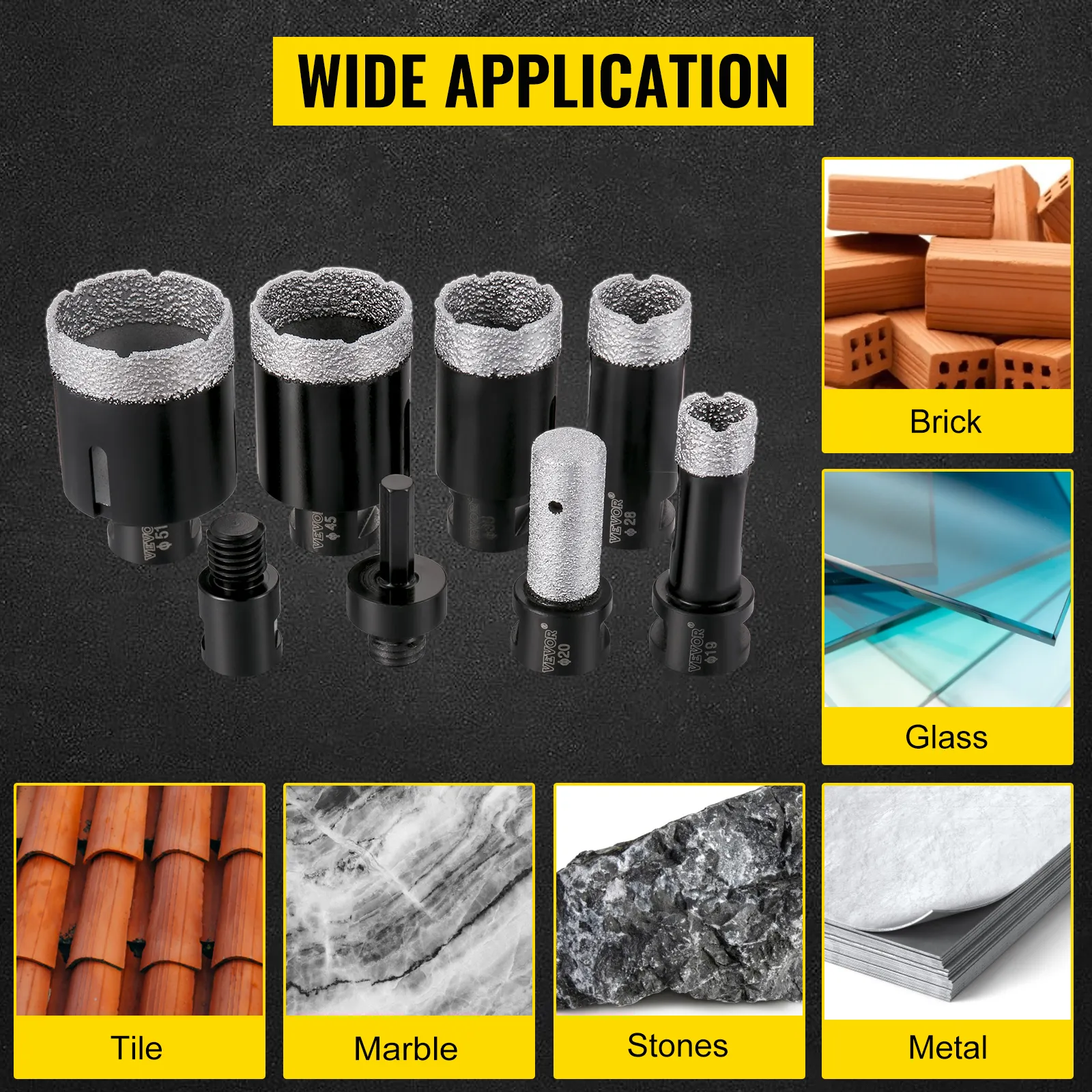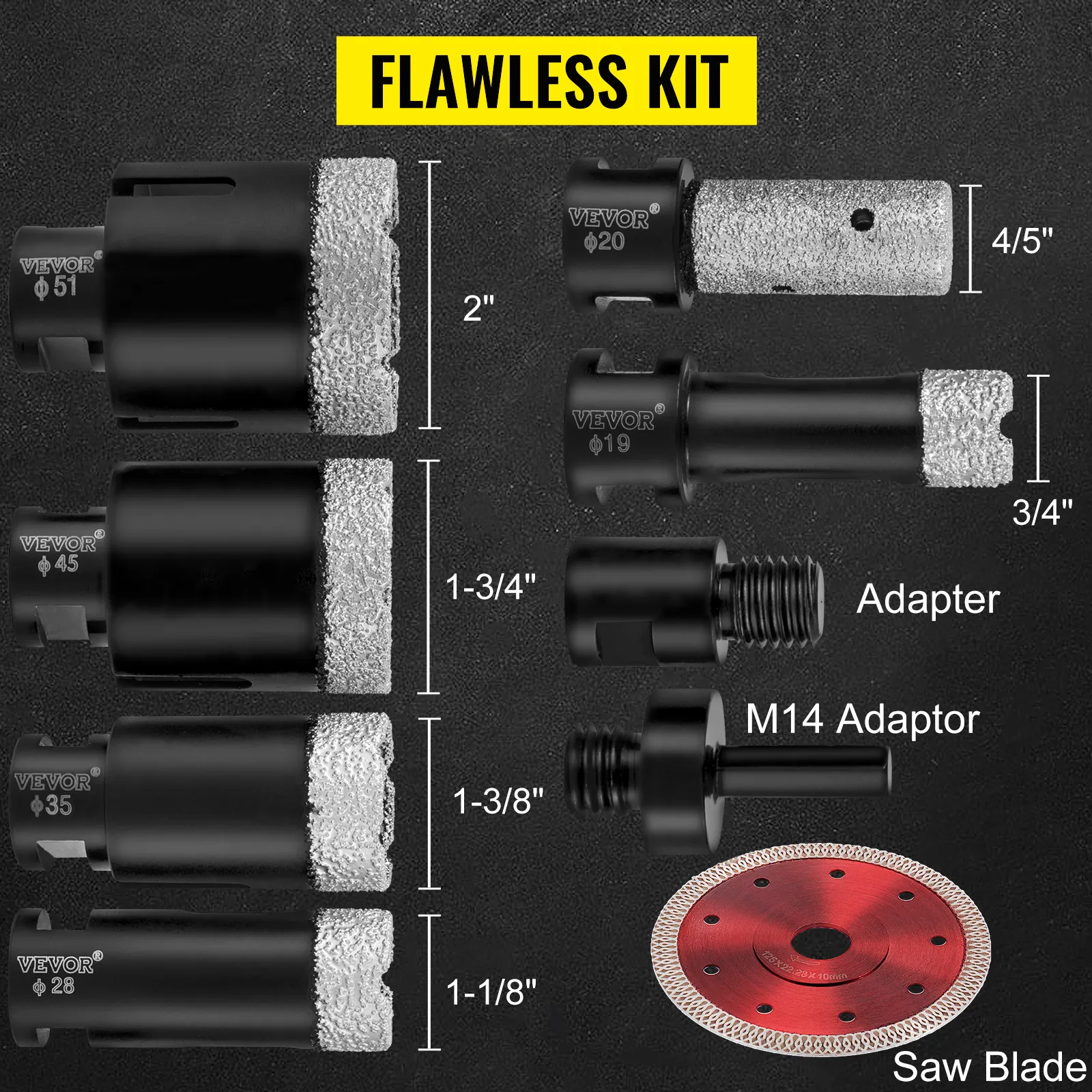 Este juego de brocas de diamante profesionales de primera calidad, con múltiples brocas y una hoja de sierra. La tecnología de soldadura fuerte al vacío proporciona un corte rápido, simple y limpio. Es adecuado para porcelana, granito, mármol.
