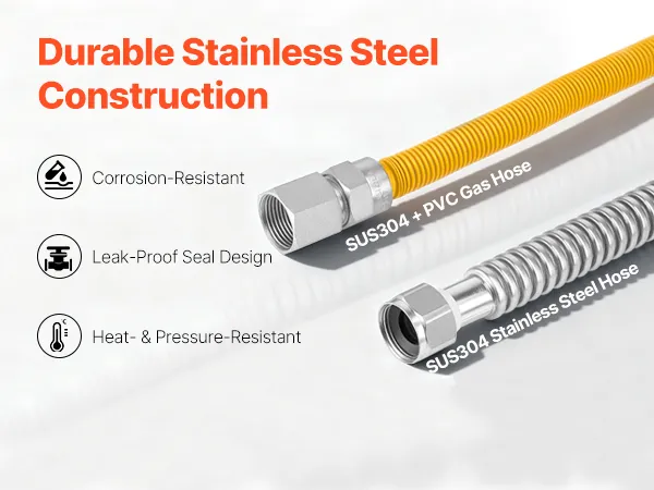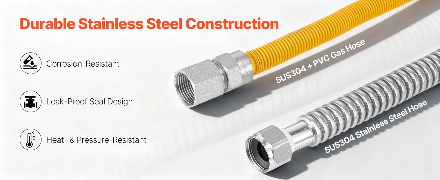Fabricado con acero inoxidable SUS304 de primera calidad y PVC reforzado, nuestro kit de instalación de calentador de agua sin tanque garantiza que cada conexión de agua y gas se mantenga segura y duradera, lo que garantiza la estabilidad a largo plazo para su sistema de agua caliente.