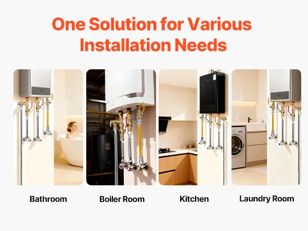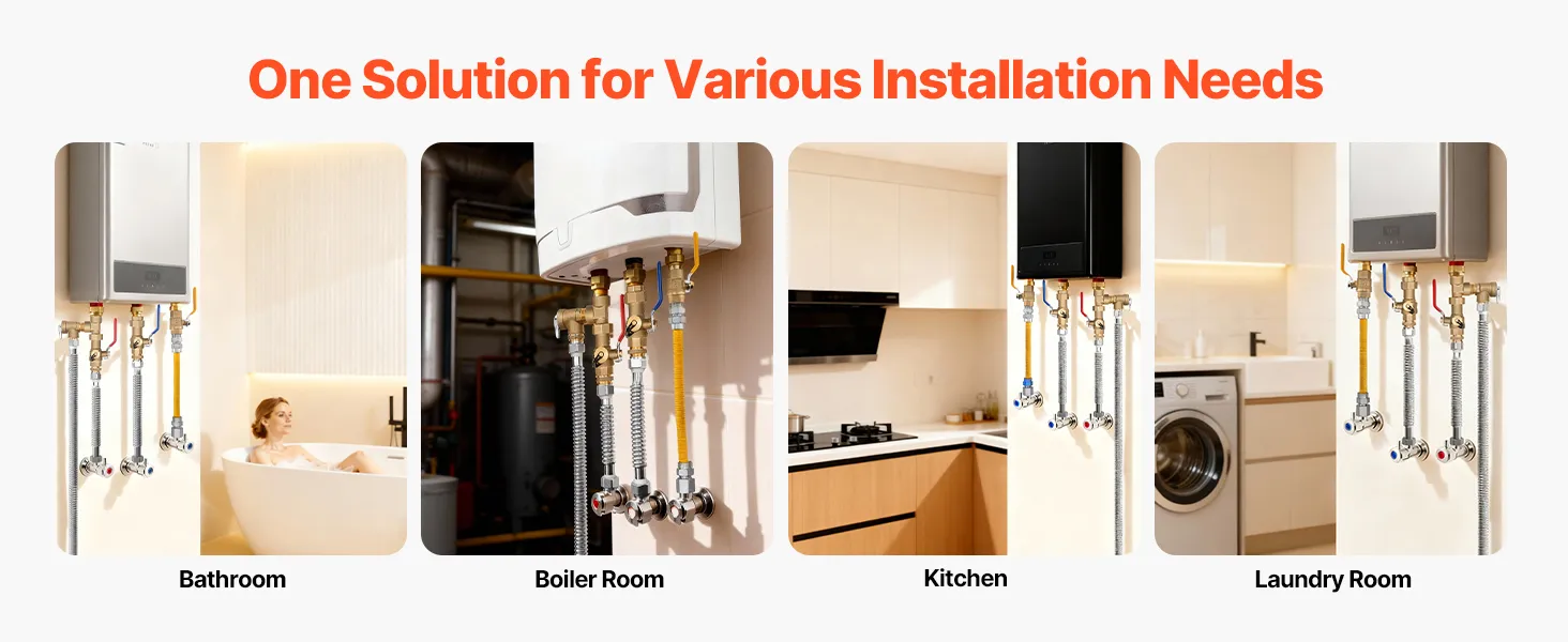 Aplicación en múltiples escenarios: ideal para baños, salas de calderas y cocinas, nuestro kit de instalación de calentador de agua es adecuado tanto para instalaciones de calentadores de agua sin tanque a gas domésticos como comerciales.