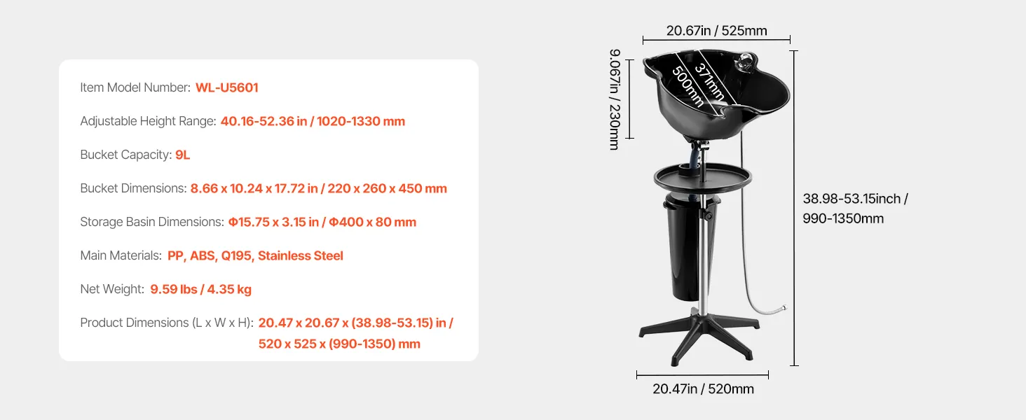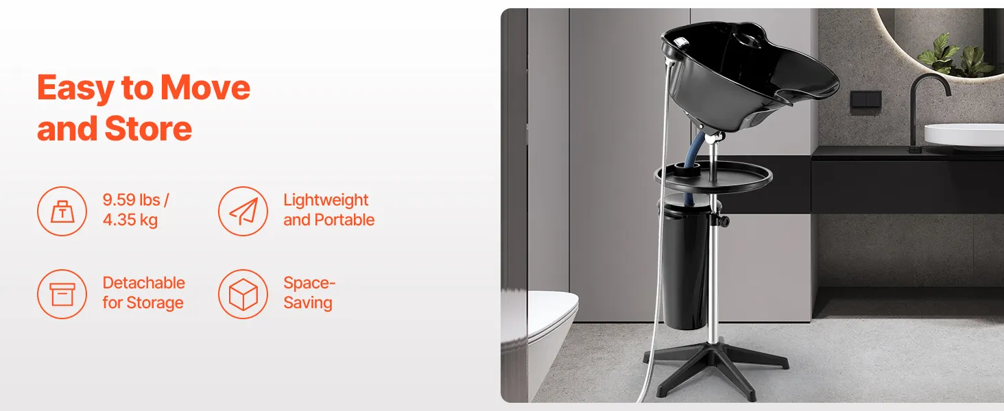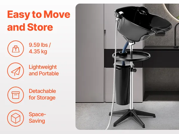 Lightweight & Easy to Move: Weighing only 9.59 lbs/4.35 kg, the salon sink is easy to install with clear instructions or an installation video. It is designed for easy daily movement and storage.