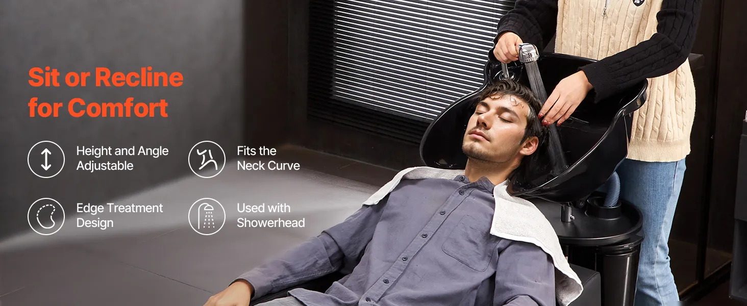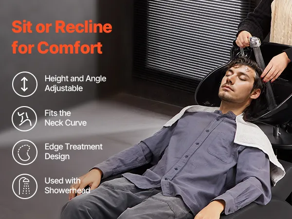 Comfortable Use: Designed to fit the neck curve, the shampoo bowl's height is adjustable between 40.16-52.36 in/102-133 cm, and the angle can be adjusted up to 270° forward and backward. Whether sitting or reclining, you can easily adjust it for comfort. The edges are rolled for added comfort, and combined with the showerhead, it ensures a pleasant washing experience.