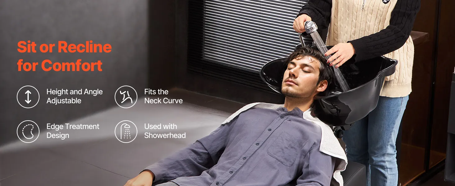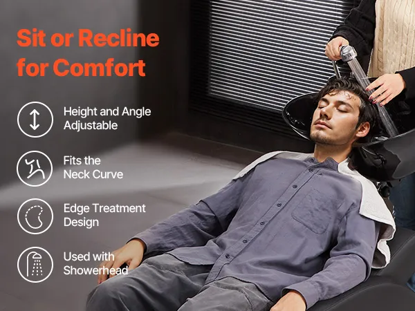 Comfortable Use: Designed to fit the neck curve, the shampoo bowl's height is adjustable between 37.8-52.36 in/96-133 cm, and the angle can be adjusted up to 270° forward and backward. Whether sitting or reclining, you can easily adjust it for comfort. The edges are rolled for added comfort, and combined with the showerhead, it ensures a pleasant washing experience.