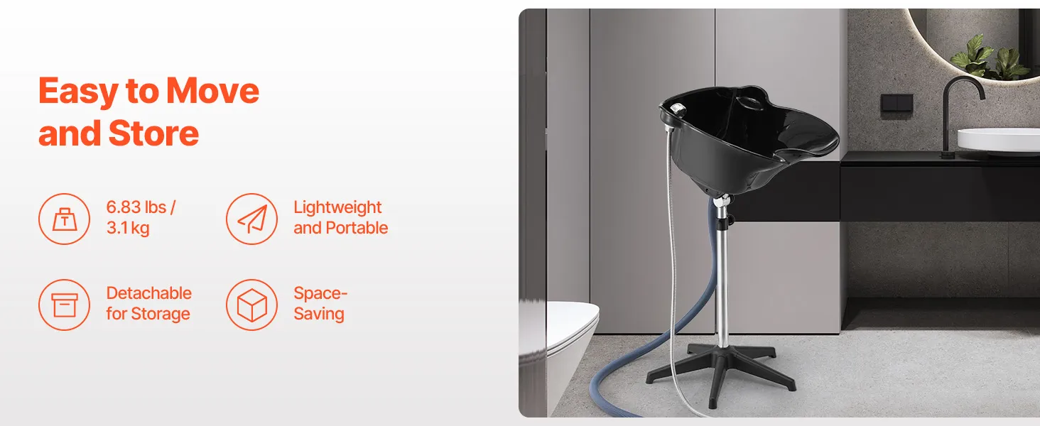 Lightweight & Easy to Move: Weighing only 6.83 lbs/3.1 kg, the salon sink is easy to install with clear instructions or an installation video. It is designed for easy daily movement and storage.