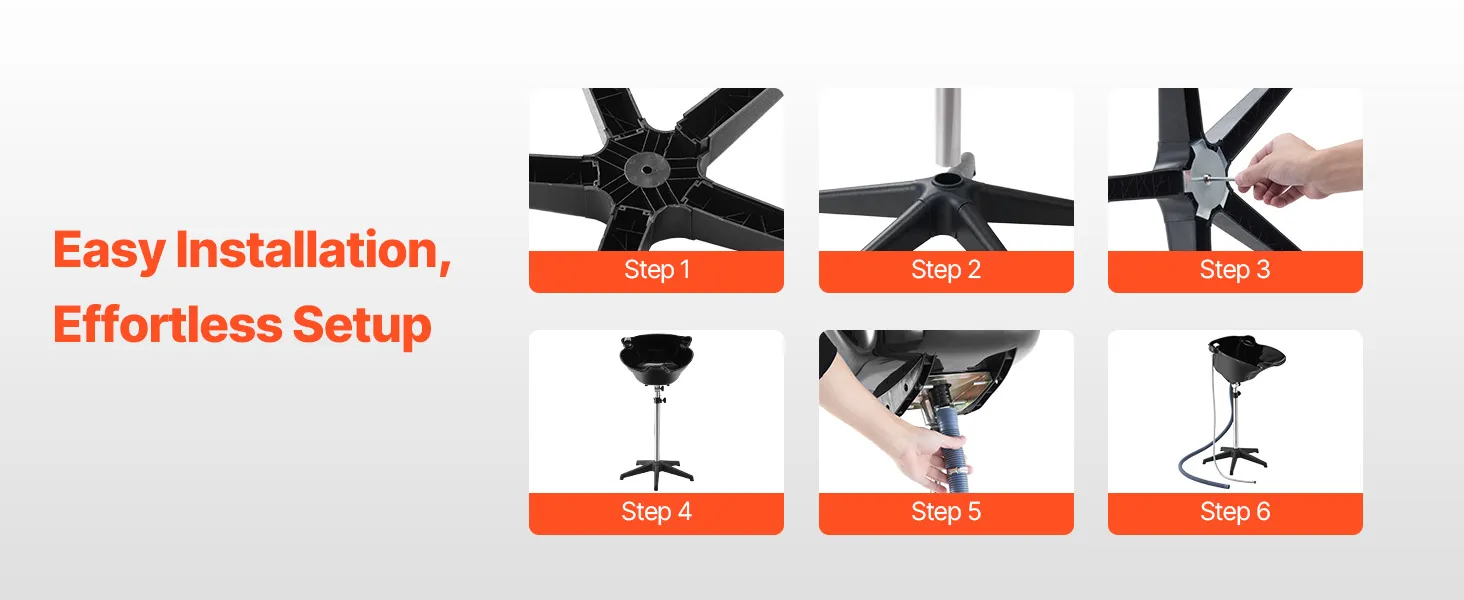 The portable shampoo bowl can be quickly installed and disassembled on your own by following the provided instructions. It's simple and convenient for daily mobility, cleaning, and storage.