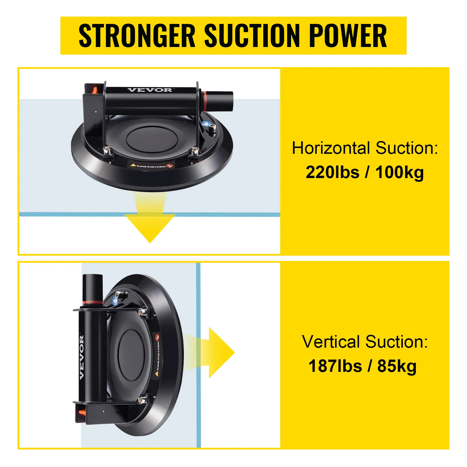 La ventosa de vacío de 8" tiene una gran capacidad de retención de vacío, lo que le permite succionar y mover 220 libras de objetos. También está equipada con una ventosa de goma estampada para aumentar la succión.