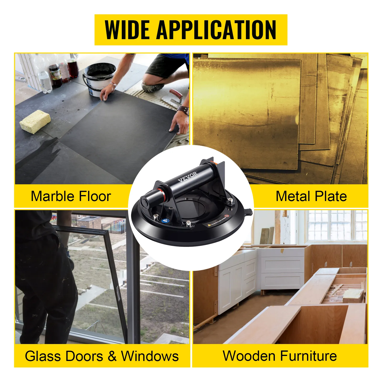 Esta ventosa para levantar vidrio es una excelente opción para levantar artículos con superficies planas y lisas, como vidrio grande, azulejos, acuarios, muebles de madera, plásticos y placas de metal.
