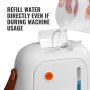 Nuestro vaporizador adopta una atomización completa y produce una delicada neblina de agua durante la limpieza, un secado rápido al aire y sin dejar manchas de agua difíciles de secar en las superficies.