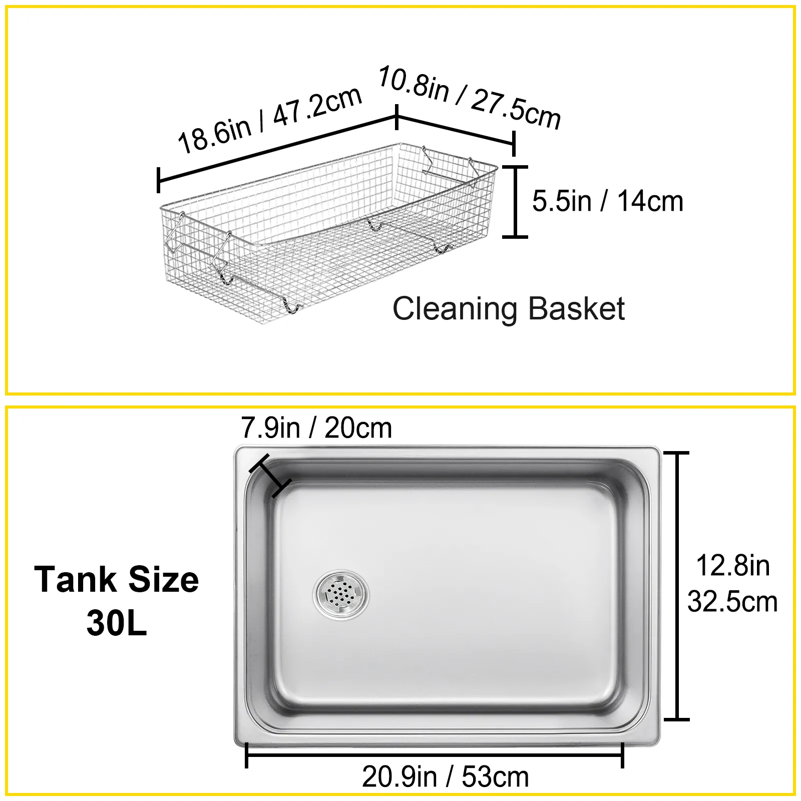 VEVOR está bien informado sobre todos estos factores, por eso te proporciona un limpiador ultrasónico de 30 litros. Es lo suficientemente espacioso como para limpiar varios artículos simultáneamente.