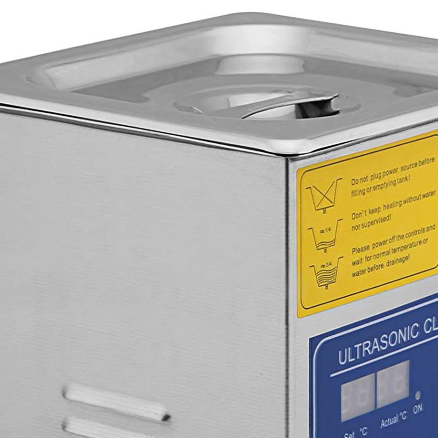Este limpiador ultrasónico está hecho de acero inoxidable 304 con una tapa que reduce el ruido y una carcasa que no deja huellas, diseñada para un uso duradero y una fácil limpieza.