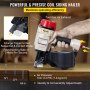 La presión de funcionamiento es de 100-114 PSI, que puede soportar un clavado rápido y continuo. Puede seleccionar los modos de disparo de accionamiento secuencial o de contacto cambiando el gatillo. El gatillo del modo de disparo a tope tiene una velocidad de disparo rápida de 3 clavos por segundo.