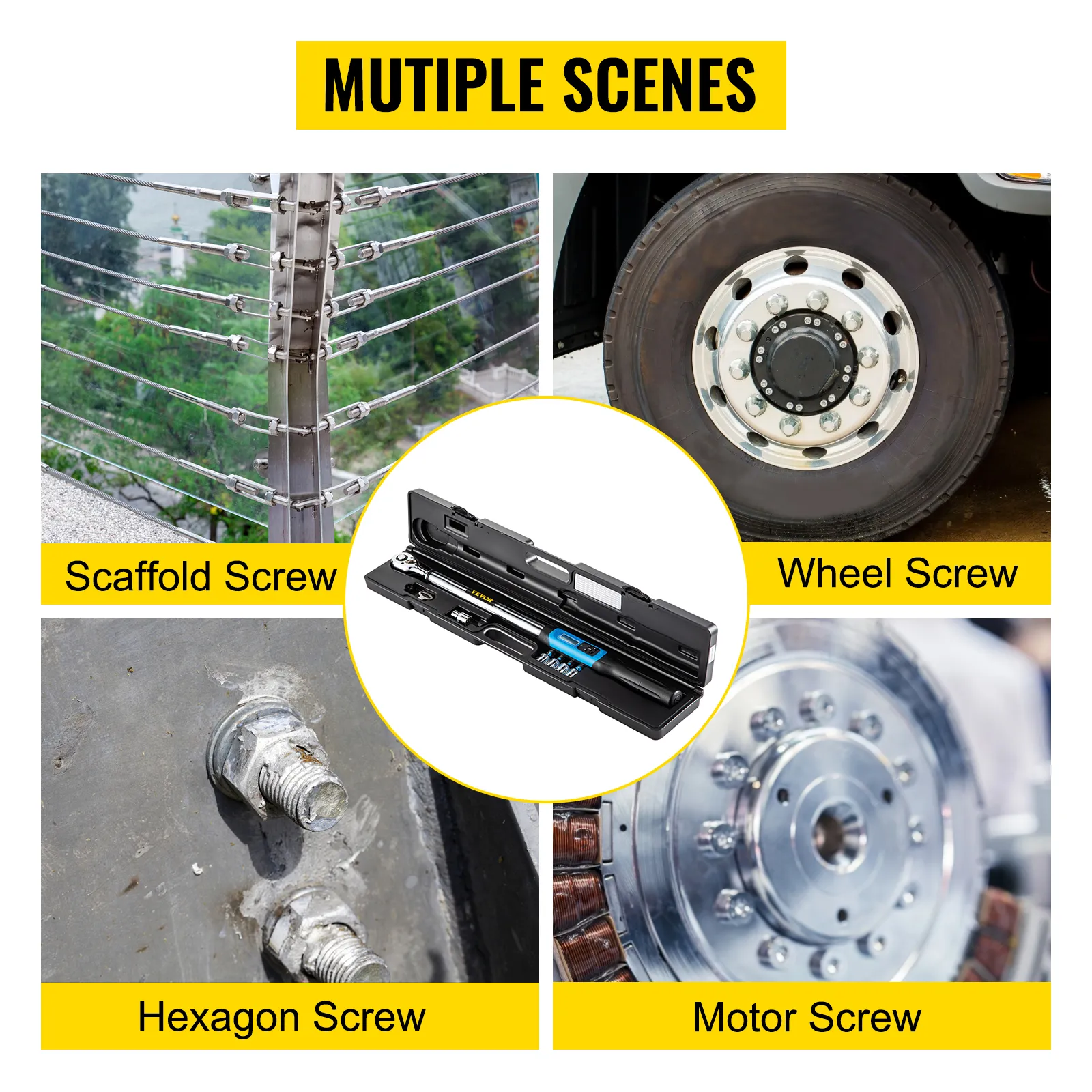 Esta llave dinamométrica eléctrica de diseño inteligente con un juego de dados es ideal para trabajos de suspensión y para apretar/aflojar pernos en un soporte de motor y una unidad HVAC. Cuenta con una gran pantalla LED para facilitar la visualización en 4 opciones de medición y ofrece una precisión de hasta ±2 % en el sentido de las agujas del reloj y ±2,5 % en el sentido contrario a las agujas del reloj. El material de acero resistente y los plásticos industriales prolongan la vida útil. Nuestra llave dinamométrica profesional puede funcionar en muchos casos, como reparación de automóviles/bicicletas y proyectos de bricolaje.