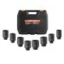 The 12-point impact socket set comes neatly organized in a durable storage case, helping you keep everything in order and protecting the sockets from loss or damage. The case also features a handle for easy transport.