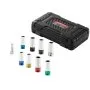 Todos los dados para tuercas de rueda están perfectamente organizados en un estuche de almacenamiento duradero para facilitar el acceso y el transporte. El estuche mantiene sus herramientas seguras y ayuda a evitar pérdidas.