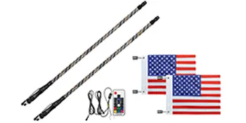Todo terreno se trata de mantener el control de su vehículo y equipo, no siempre es una tarea fácil. Aquí le ofrecemos 2 látigos LED en espiral de 4 pies de color RGB con función de cambio de color. Sin embargo, nuestros látigos LED son fáciles de controlar y personalizar con un cómodo control remoto. El diseño perfecto hace que su vehículo se vea único y creativo con estas banderas de dunas para camiones. Adecuado para todos los vehículos DC 12, como accesorios para vehículos de cuatro ruedas. Los látigos LED universales se pueden instalar en cualquier lugar, sin importar la marca y el modelo que conduzca, seguramente encontrará la posición perfecta para ello. Estos están fabricados con componentes de la mejor calidad que garantizan un tiempo agradable fuera de la carretera.