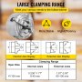 Rango de sujeción de la mandíbula interna: 0,236"-1,77"/6-45 mm. Rango de sujeción de la mandíbula externa: 1,57"-3,93" / 40-100 mm.