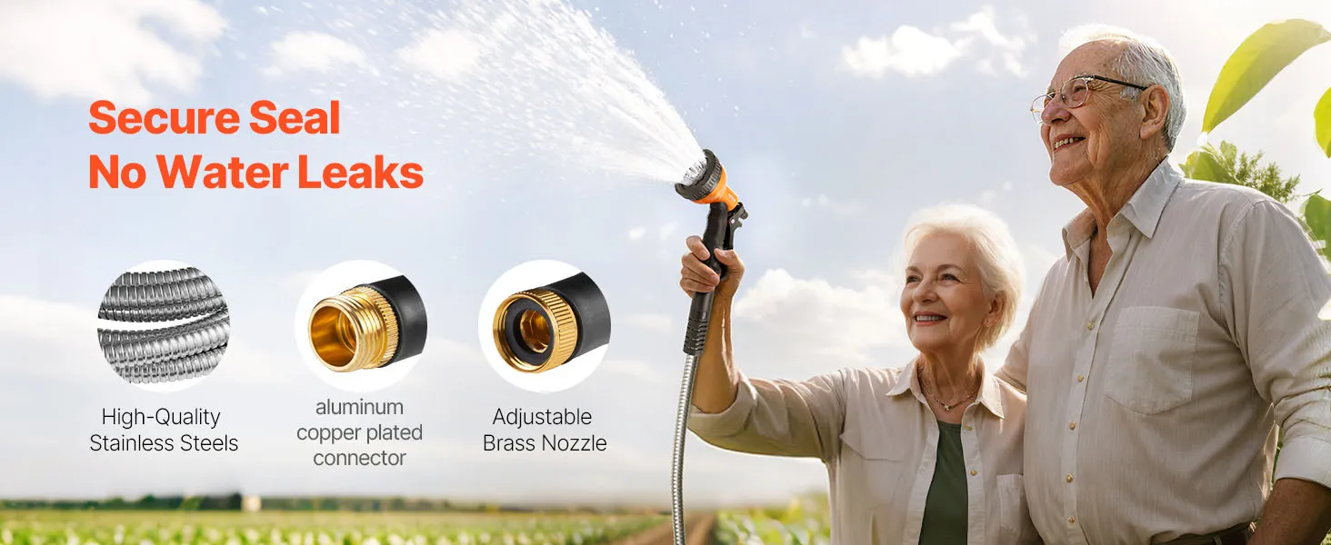 Durability & Longevity: This metal garden hose features a high-quality stainless steel outer layer, offering exceptional wear and corrosion resistance. Built for long-term use in all environments, it reduces replacement frequency and saves costs.