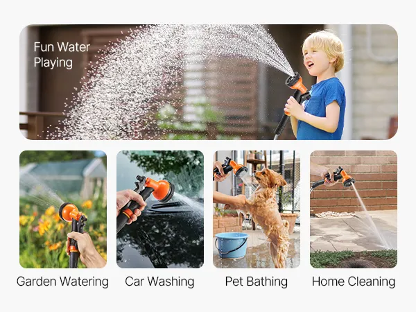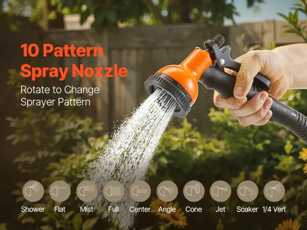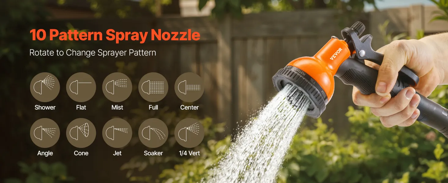 Versatile Spray Gun: Equipped with a 10-pattern spray nozzle, this outdoor hose accommodates everything from watering plants to washing cars. A ideal tool for flexible and efficient home gardening and cleaning.