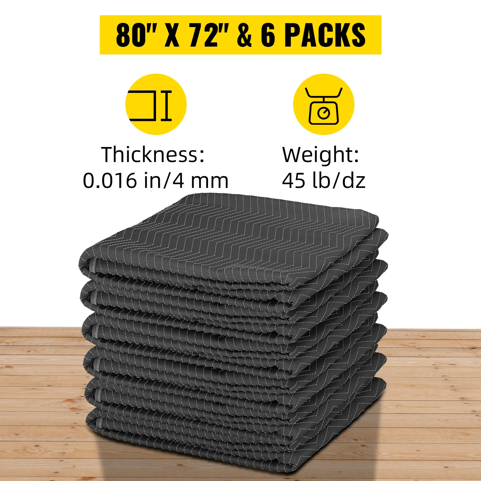 - Las mantas de mudanza y embalaje VEVOR están hechas de aglutinante no tejido y relleno de algodón reciclado, duradero y suave. Tanto la esquina de doble costura como la superficie de costura en zig-zag mejoran la resistencia de las mantas. Es un excelente ayudante para proteger muebles, electrodomésticos y otros artículos valiosos de rasguños y roturas durante una mudanza. O se puede utilizar como capota protectora para evitar el polvo y la suciedad durante el almacenamiento. Tome las medidas adecuadas para proteger sus objetos de valor y viva la vida al máximo con VEVOR.
