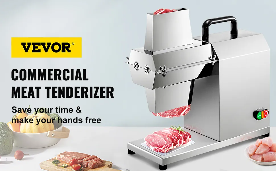 - ¿Por qué esperar horas para marinar sus comidas favoritas cuando puede ahorrar tiempo con un producto fácil de usar? Ablandador de carne VEVOR es el secreto. Hecho de acero inoxidable apto para uso alimentario, nuestro ablandador es una herramienta de cocina esencial para cualquier chef doméstico o profesional. Resaltará el sabor más jugoso de tu corte de carne favorito. Consíguelo e infunde adobos y condimentos en cualquier carne para obtener un sabor inigualable.