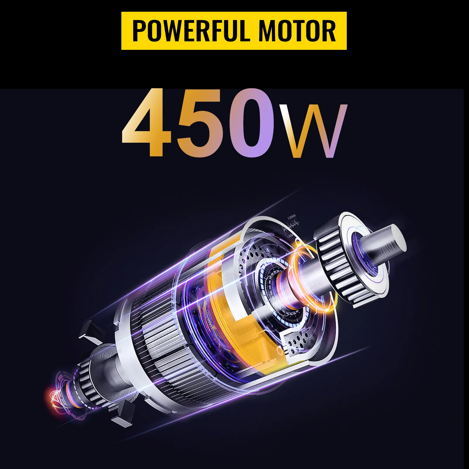 Cuerpo de acero inoxidable, motor de 450 W y cuchillas dobles