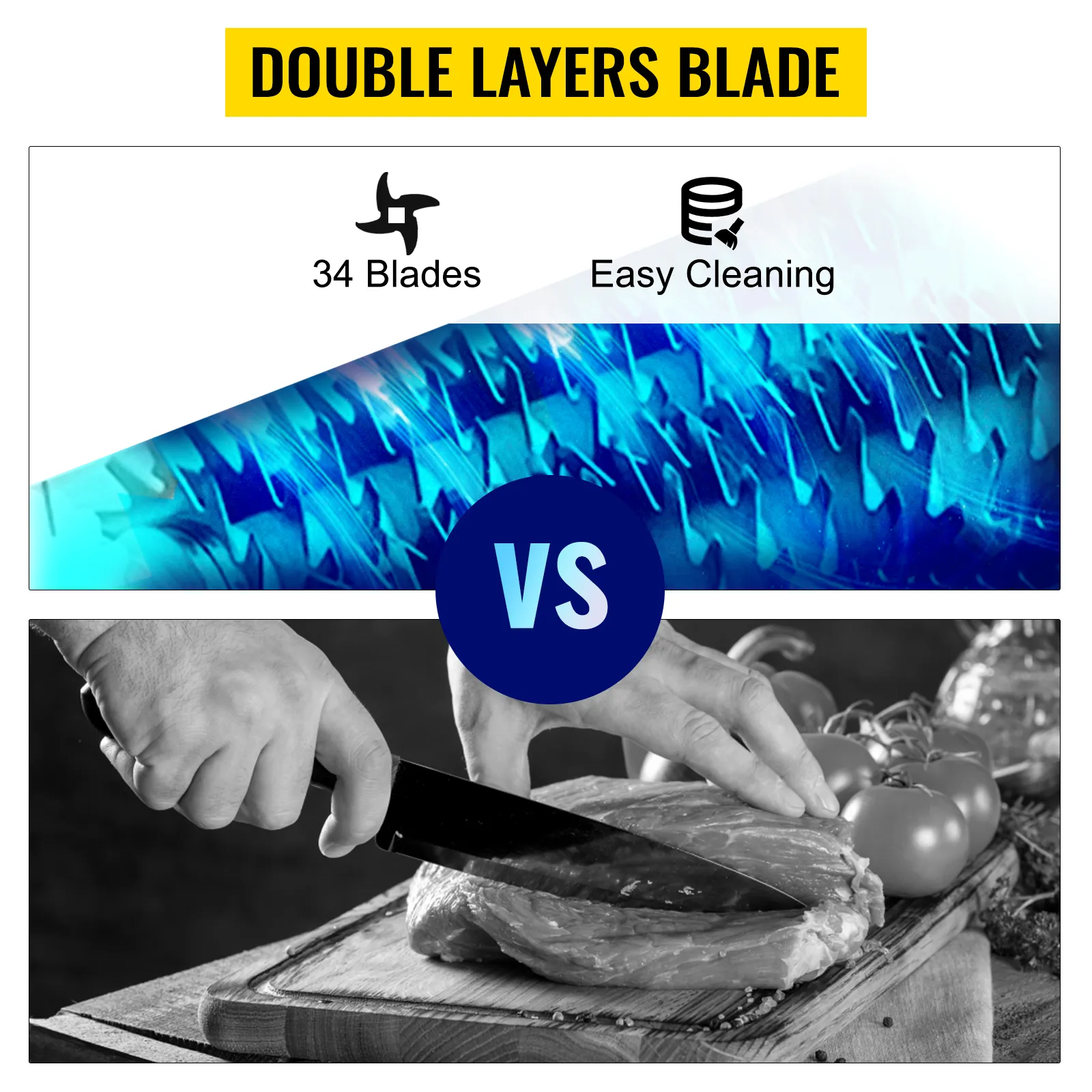 Las 34 cuchillas giratorias dobles perforan la carne fibrosa y ablandan ambos lados a la vez, lo que es perfecto para la penetración de adobos y salsas. Las cubiertas protectoras evitan arañazos o lesiones. La rotación completa del engranaje cerrado es de bajo ruido.