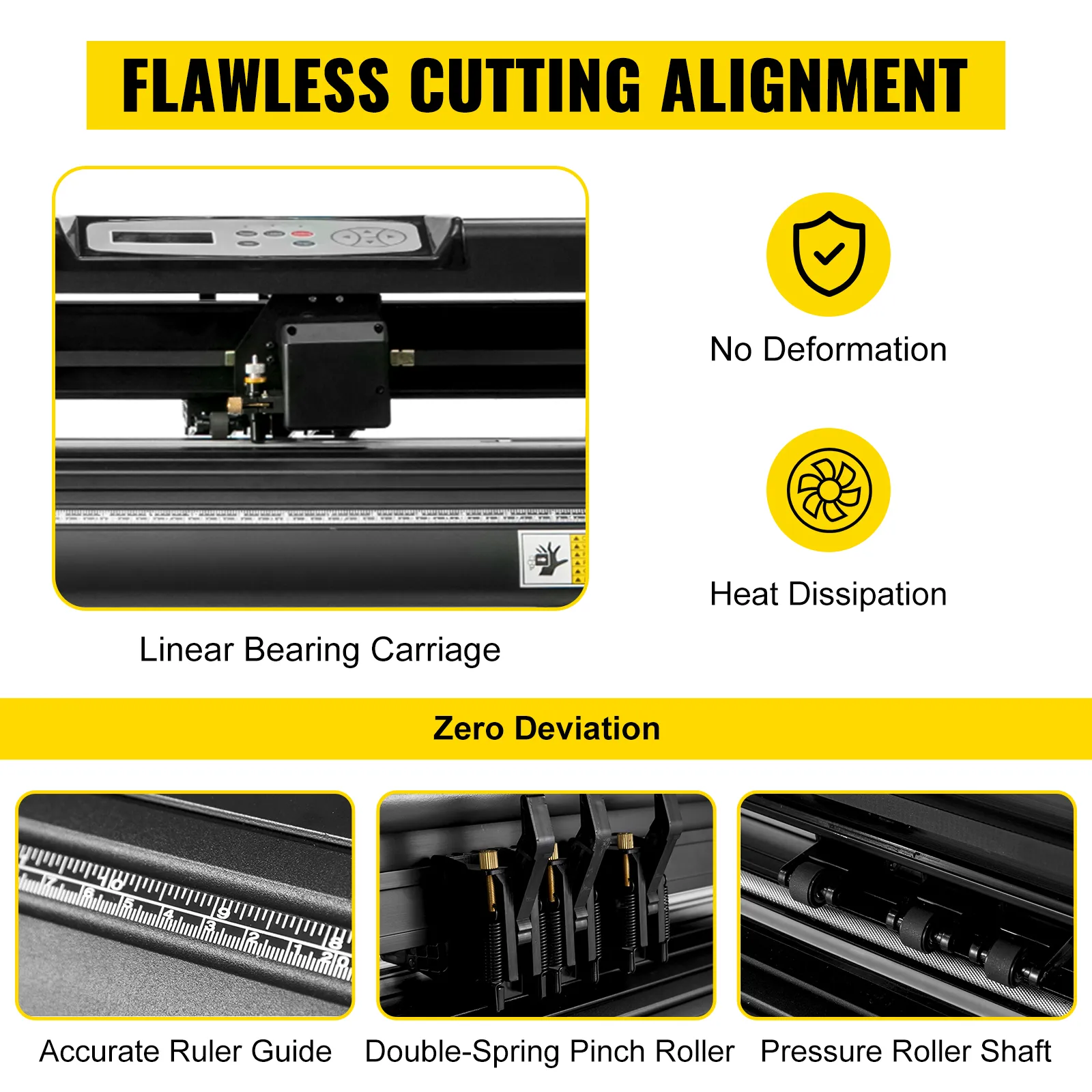 Los rodillos de arrastre de doble resorte ajustables montados en la parte trasera, la palanca de moleteado de aluminio, las ruedas de presión de alta precisión y la línea de escala están integrados para un corte más fácil a través de varios espesores de materiales de vinilo. Además, asegura que el papel del plotter de vinilo se alimente de manera constante sin atascos de papel.