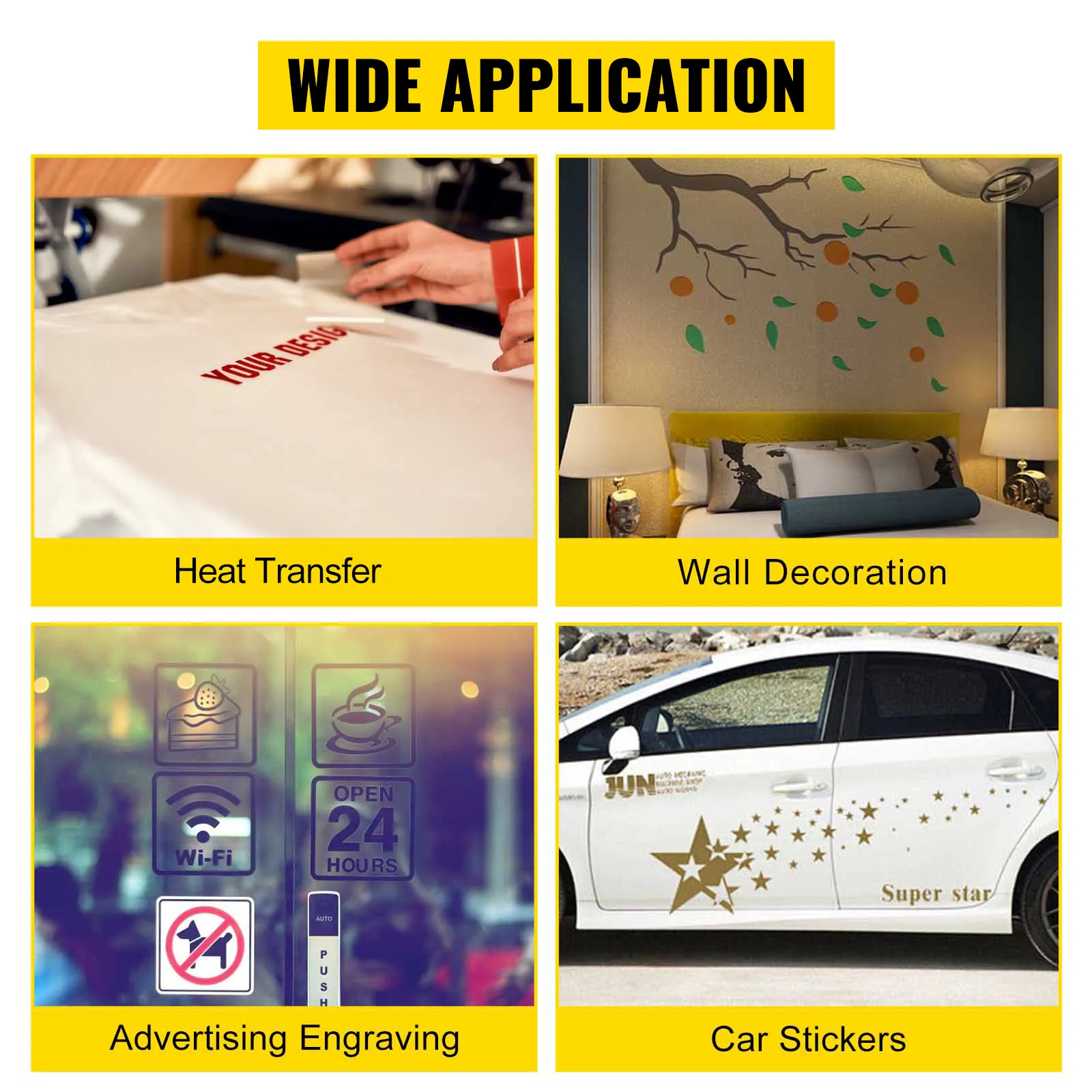 El cortador de vinilo puede cortar sin problemas varios materiales, lo que le brinda un control superior al crear logotipos, formas y letras elegantes. Como resultado, la impresora de vinilo se usa ampliamente en muchas áreas que se pueden aplicar para grabar anuncios, películas de letras de transferencia de calor, etc.