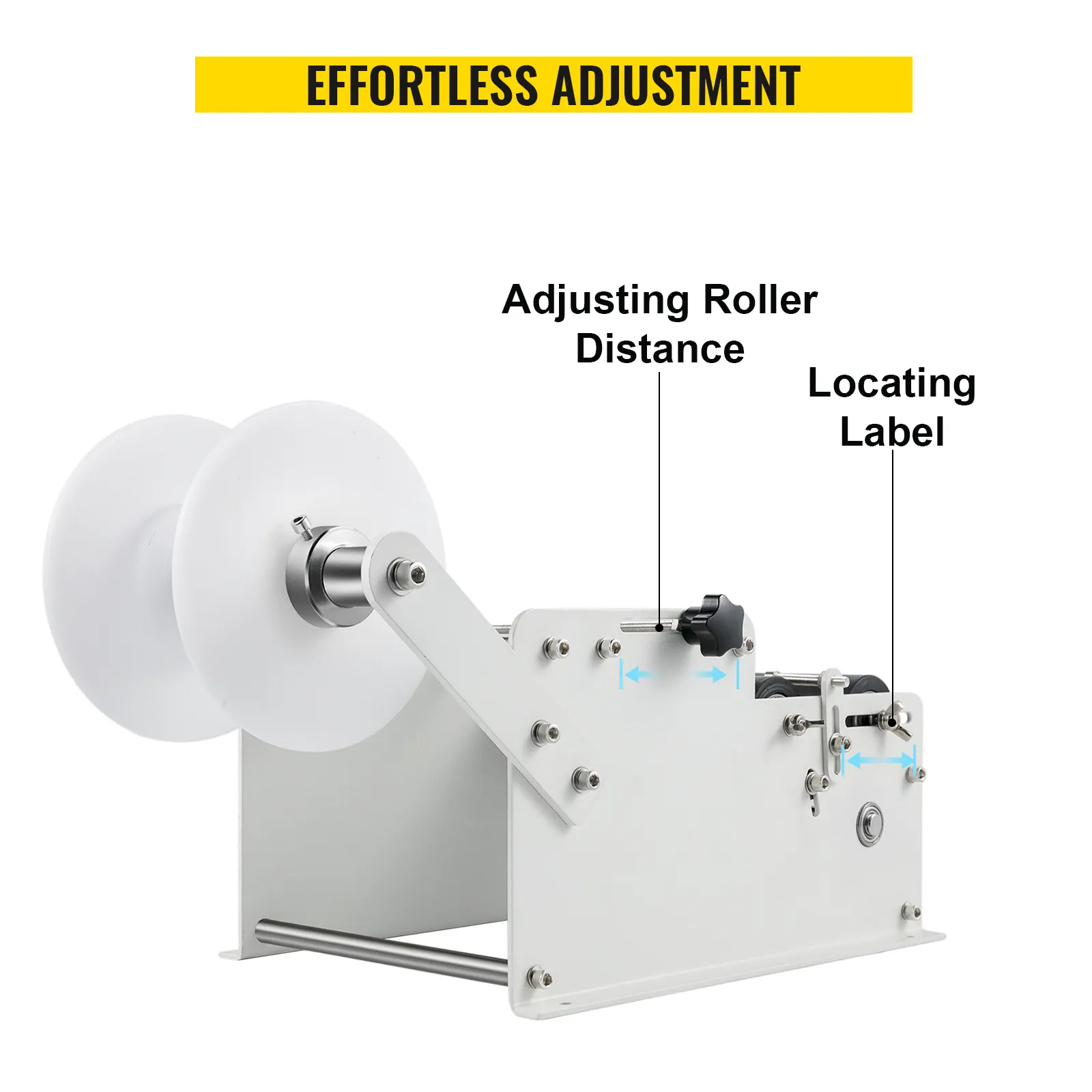 Estos son los detalles de diseño destacados de nuestra máquina etiquetadora manual: manija giratoria fenólica, rodillos NBR y la placa de etiquetas POM. Los rodillos premium y los localizadores de acero pueden fijar satisfactoriamente la botella redonda en su lugar.