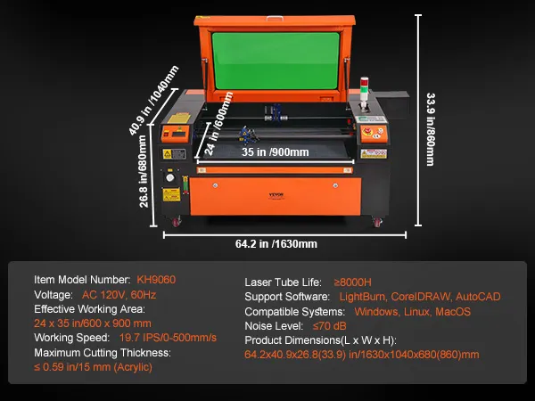 Grabador láser de CO2 VEVOR de 100 W, 24 x 35 pulgadas, 19,7 IPS, máquina de corte láser con asistencia de aire de paso bidireccional, compatible con LightBurn, CorelDRAW, AutoCAD, Windows, Mac OS, Linux, para madera, acrílico, tela y más