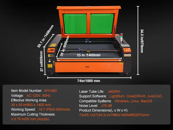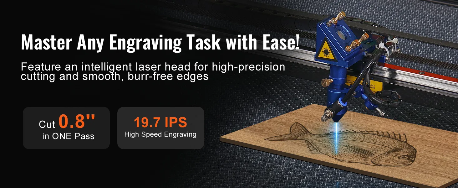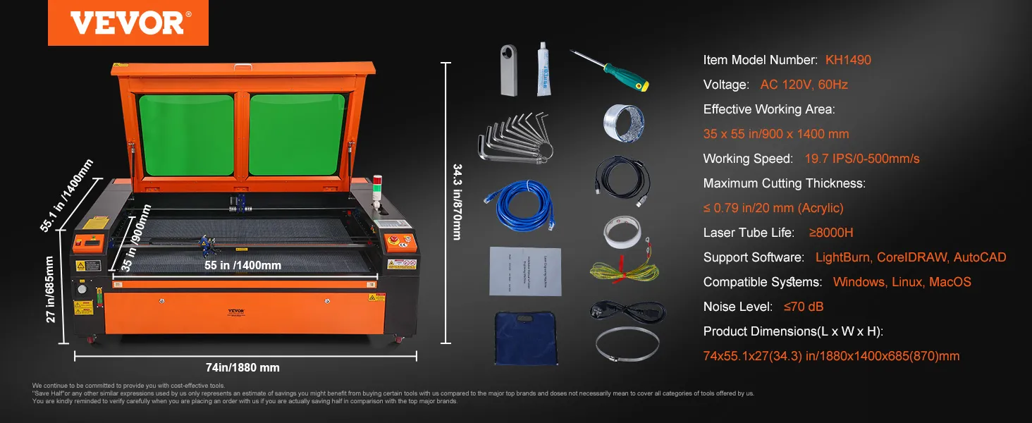 Grabador láser de CO2 VEVOR de 130 W, 35 x 55 pulgadas, 19,7 IPS, máquina de corte láser con asistencia de aire de paso bidireccional, compatible con LightBurn, CorelDRAW, AutoCAD, Windows, Mac OS, Linux, para madera, acrílico, tela y más