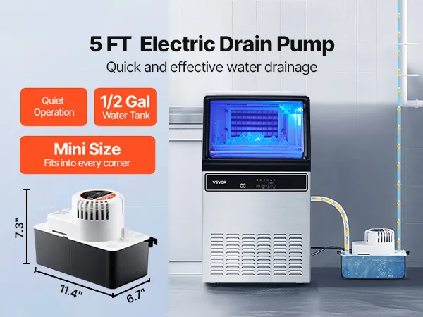 Fabricación eficiente de hielo: La máquina de hielo comercial con bomba produce 45 cubos por ciclo y hasta 60 kg de hielo al día, con una capacidad de almacenamiento de 15 kg. Ideal para uso doméstico, en bares o en comercios ligeros. Certificación ETL y ENERGY STAR para un rendimiento seguro y eficiente.