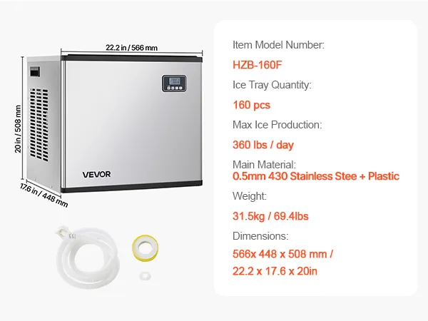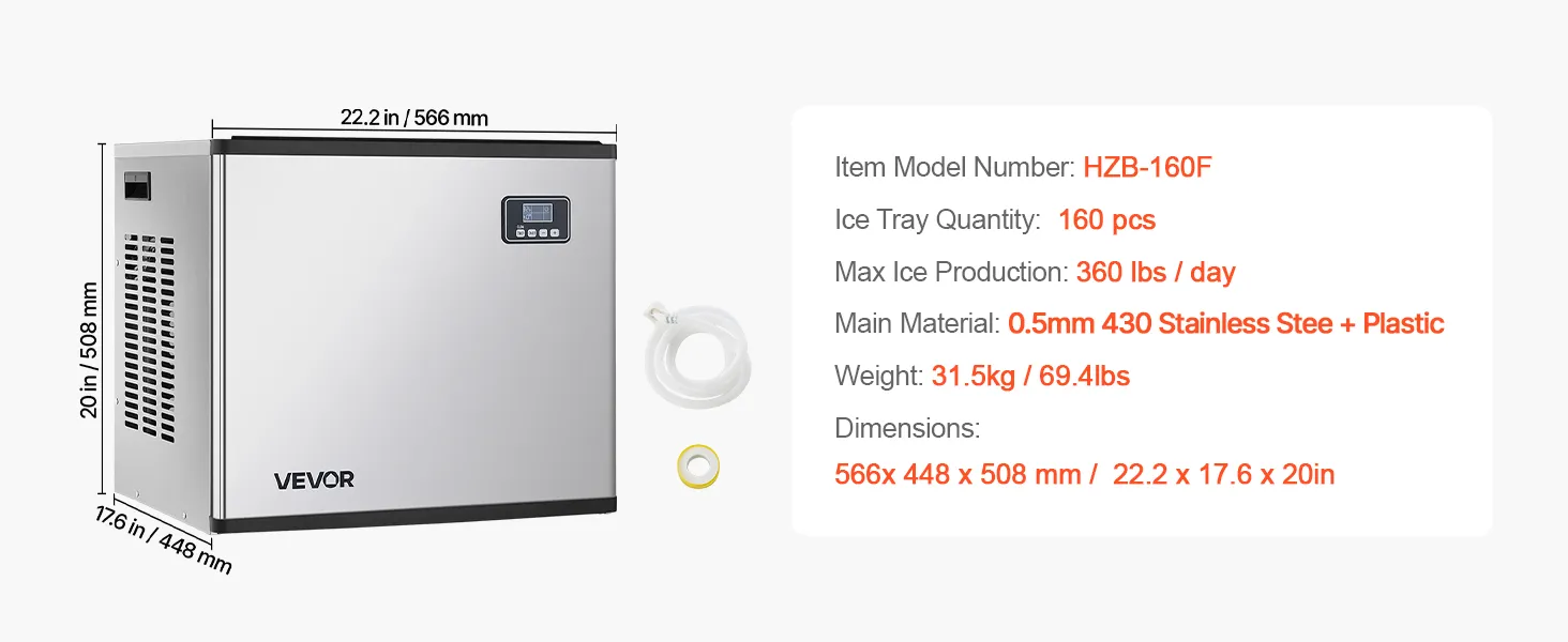 Producción rápida de hielo: La máquina de hielo comercial cuenta con 160 bandejas de hielo. Puede ajustar el grosor del hielo aumentando o reduciendo el tiempo de producción. El potente compresor puede producir cubitos de hielo en tan solo 12-15 minutos.