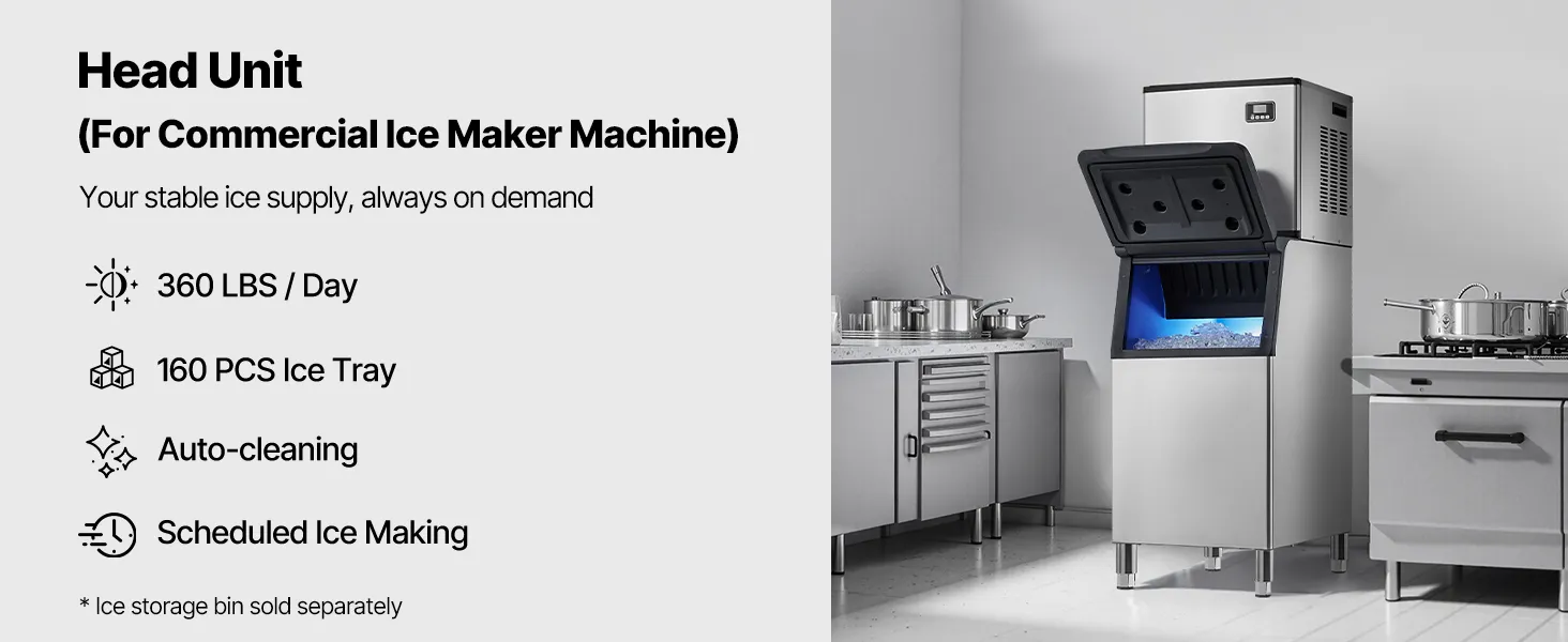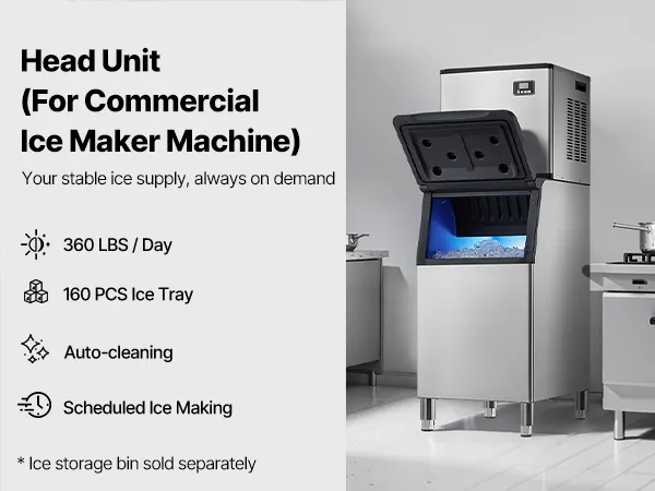 Gran producción de hielo: La máquina de hielo comercial (cabezal) puede producir 360 libras de hielo por 24 horas, lo que equivale aproximadamente a 15 000 piezas de hielo, lo que proporciona un suministro continuo de hielo en grandes cantidades.