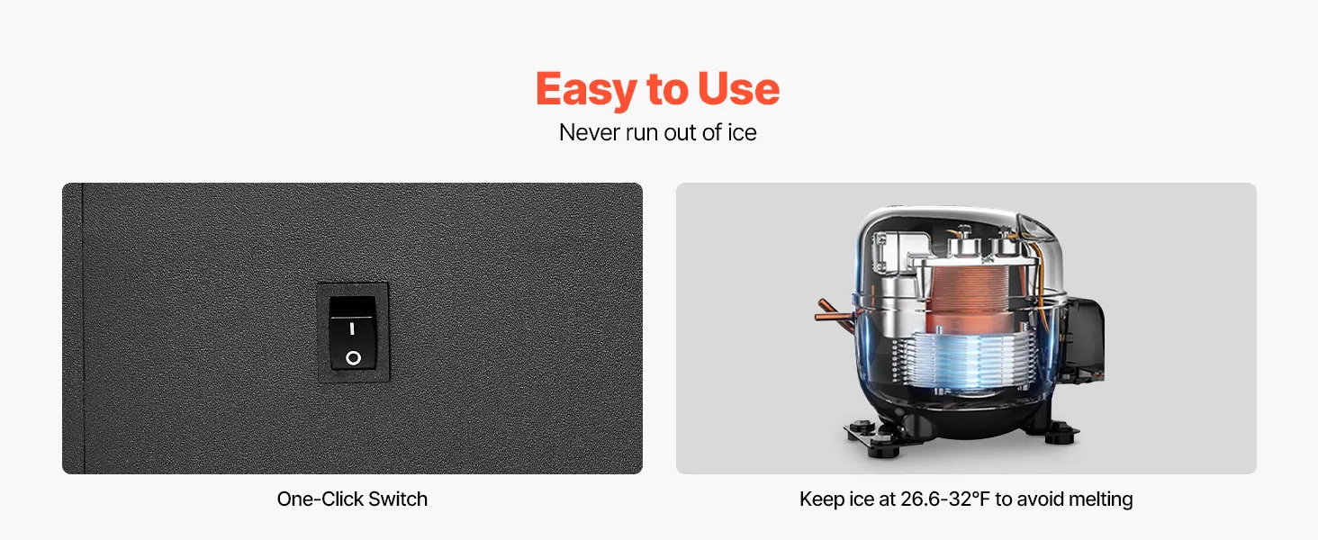 No Drain Required: With a built-in freezing compartment, the ice stays frozen without the need for drainage. There’s no need to worry about cleaning or maintenance, and this unit can be installed anywhere you'd like—kitchen, living room, patio, and even on RVs or boats. ETL certified.