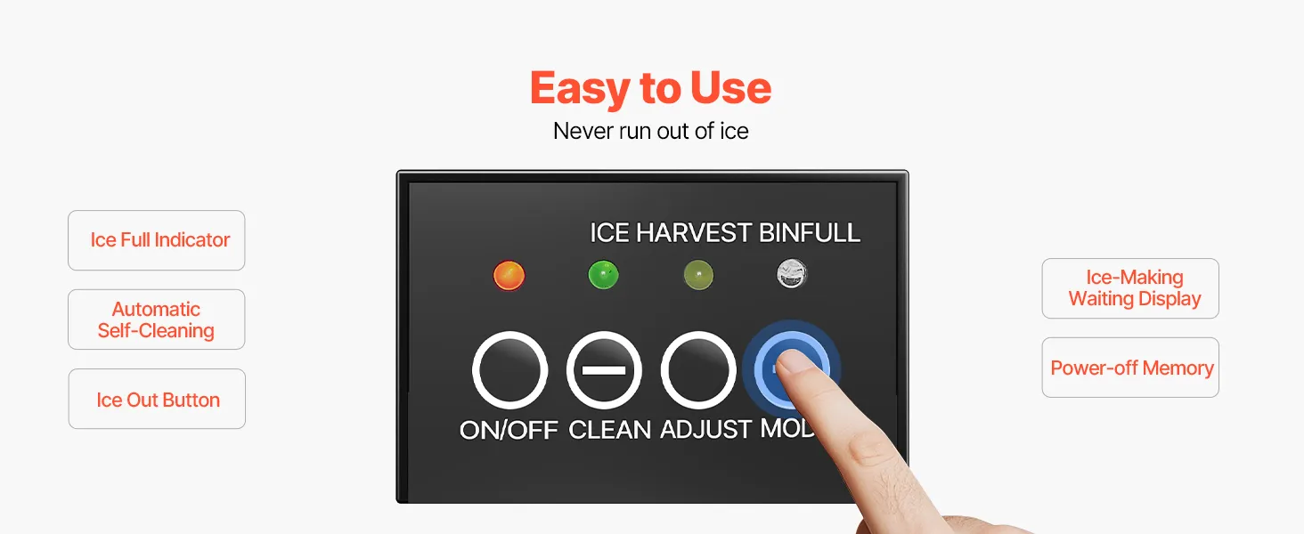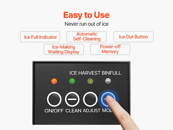 Featuring ice full alert, ice out button, automatic self-cleaning, ice-making waiting display, and power-off memory functions, this ice maker machine delivers a more professional ice-making experience.