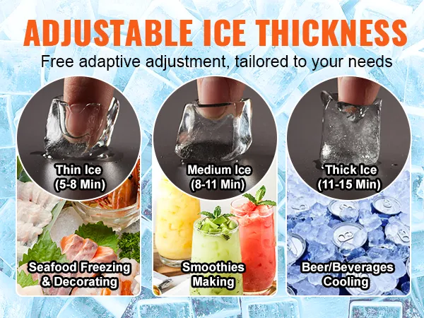 Equipada con un potente compresor de 1000 W, la máquina de hielo comercial VEVOR produce hielo fresco de cualquier espesor en menos de 15 minutos. Su producción rápida de hielo es posible porque viene con un motor de alambre de cobre de alto rendimiento con certificación UL que hace girar el ventilador de aspas de metal para mantener frío el condensador. Este sistema sinérgico garantiza que la máquina de hielo autolimpiante VEVOR se mantenga fría y siga funcionando de manera eficiente cuando más se necesita: durante las horas pico de trabajo.