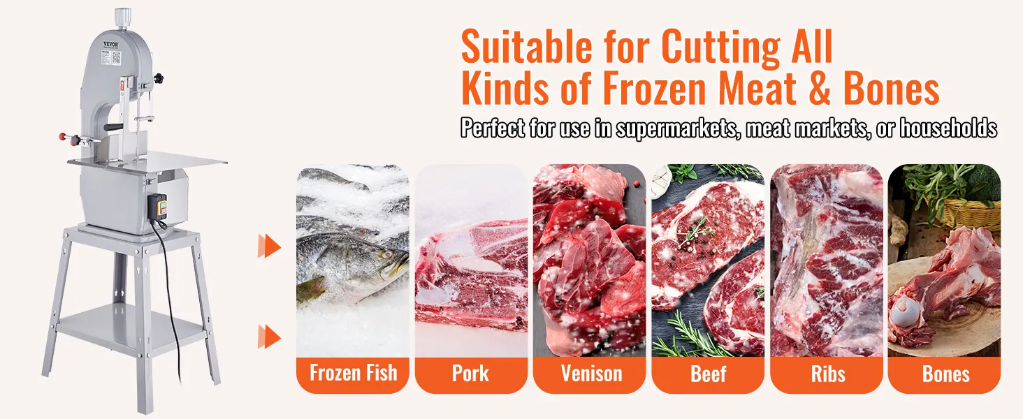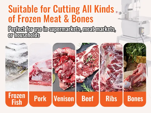 ¡Desbloquea un mundo de posibilidades culinarias! Nuestra sierra para huesos es perfecta para cortar costillas, carne de venado, huesos de res, huesos de cordero e incluso pescado congelado. Es imprescindible para restaurantes, tiendas de franquicias de carne, supermercados, plantas de procesamiento de carne, plantas de procesamiento de mariscos y mataderos.
