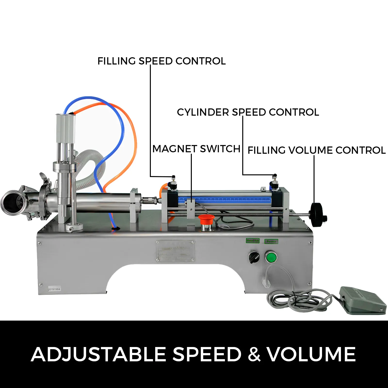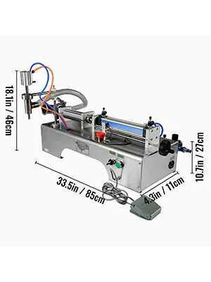 Aquí hay una lista de nuestra máquina llenadora neumática de 100-1000 ml para líquidos con un solo cabezal, adecuada para todos los líquidos, ampliamente utilizada en los campos de la química diaria, alimentos y bebidas, farmacia, etc. Nota: debe preparar el compresor de aire usted mismo.