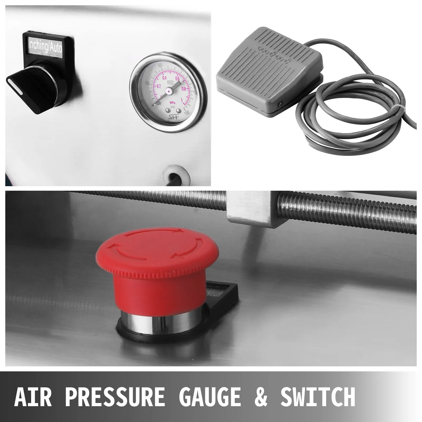 Medidor de presión de aire avanzado para un control preciso y en tiempo real de la presión del aire. Dos modelos de control: operación automática o control de punto, operado a través de un pedal. Interruptor de parada de emergencia para parar y arrancar la máquina en cualquier momento.