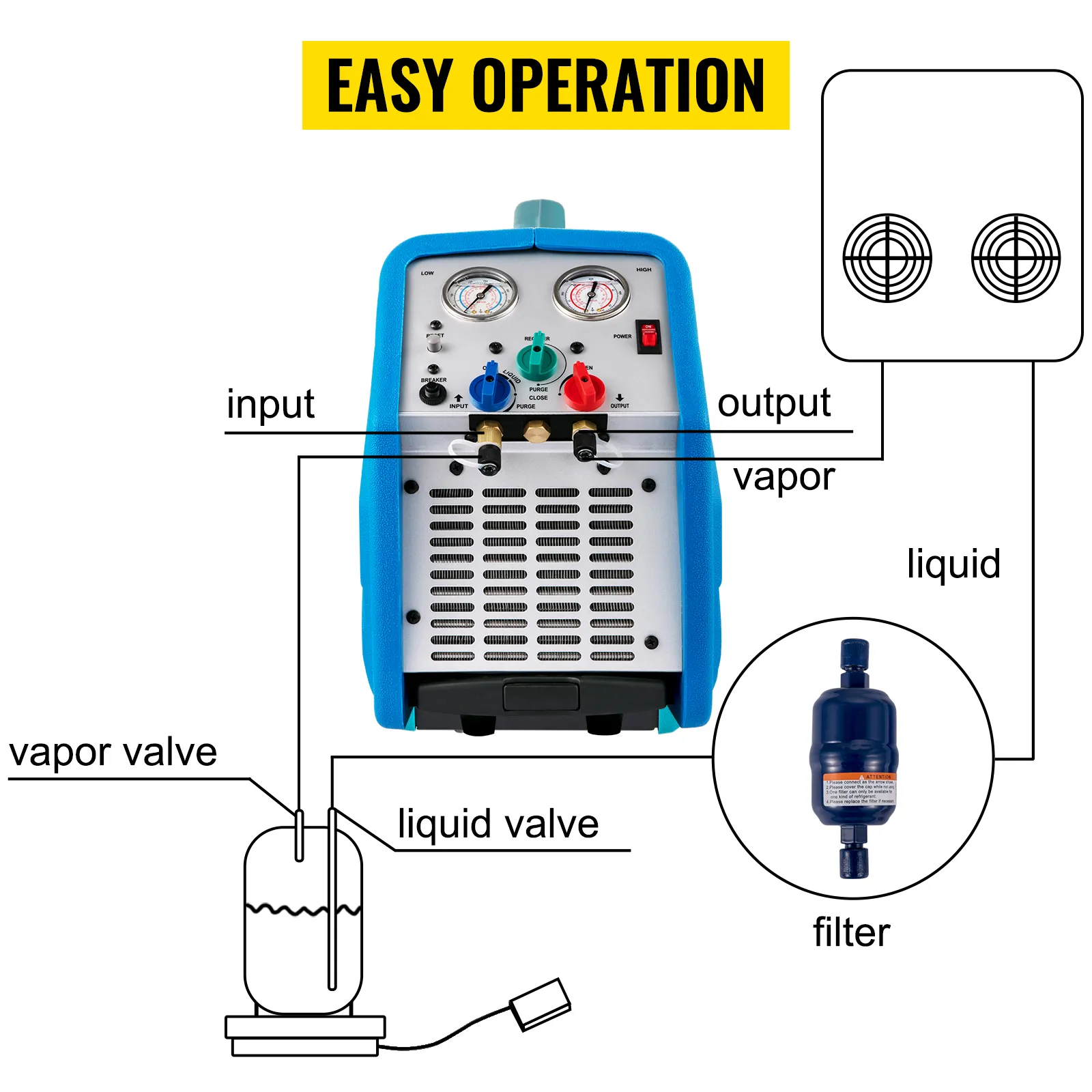 Esta recuperación de refrigerante portátil es ampliamente aplicable tanto para uso residencial como comercial. Funciona con todos los refrigerantes CFC, HFC y HCFC comunes.