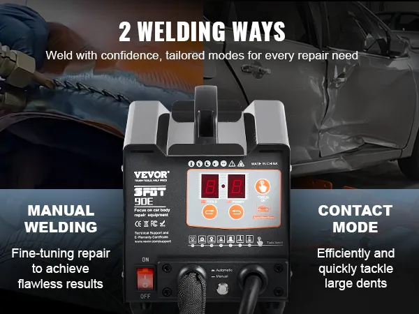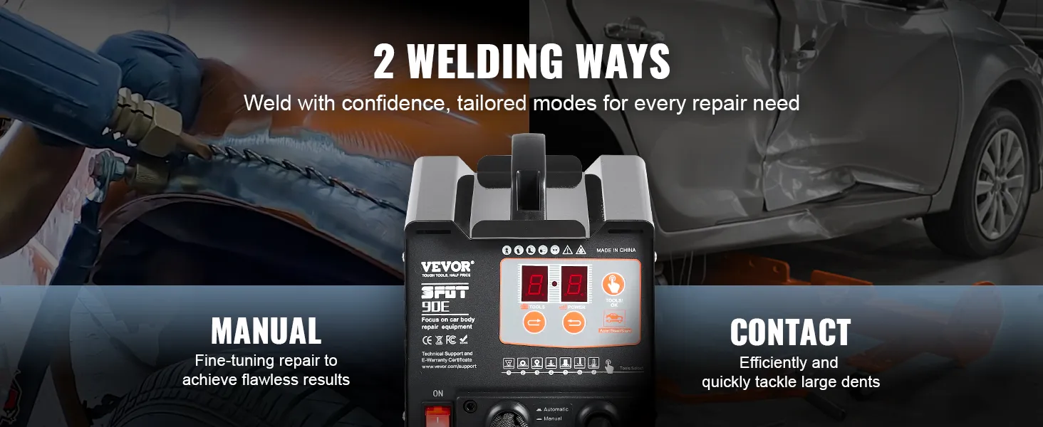 Dual Welding Modes: The manual mode allows for precise control over weld spots, ideal for handling complex and intricate dents ; automatic welding mode delivers exceptional efficiency when handling large dents, completing the welding effortlessly by just contacting the panel.