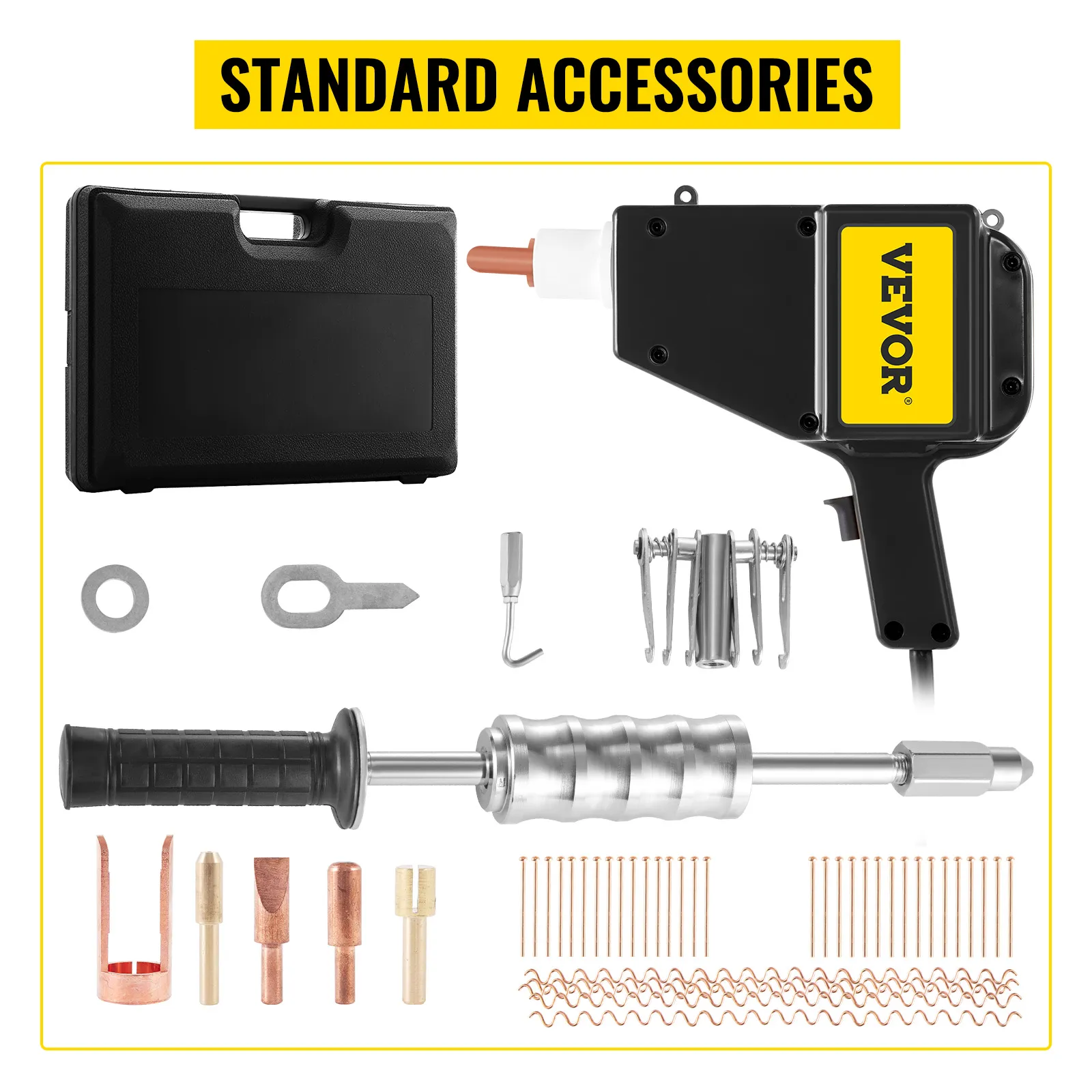 - Este extractor de abolladuras de soldador por puntos está construido con un cuerpo de plástico de alta calidad y un cabezal de pistola de cerámica resistente al calor, resistente y duradero. La función de protección térmica proporciona a esta soldadora por puntos un alto factor de seguridad. Con accesorios completos, este kit de extractor de abolladuras puede reparar abolladuras y daños comunes en la carrocería del vehículo y otras deformaciones metálicas, fácil de operar, compacto y portátil.
