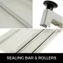 Tiene un excelente efecto de sellado con palanca, cables calefactores y tira de silicona, fácil de operar. Dos rodillos de acero inoxidable sostienen el rollo de película, lo que permite que la película quede plana y que el sellado sea eficiente.