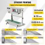 La máquina selladora está equipada con una cinta transportadora engrosada, estable y antifricción. Viene con un motor de cobre de 700 W, que proporciona gran potencia para un sellado excelente. Velocidad de sellado de película: 0-16 m/min. Ancho de sellado: 6-15 mm/0,24-0,59 pulg. Longitud de sellado: ilimitada.