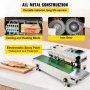 Nuestra selladora de bolsas continua VEVOR está hecha de metal para garantizar que pueda someterla a un uso intensivo durante un período prolongado sin atascarse. Además de su robusta construcción totalmente metálica, esta máquina selladora de banda cuenta con un acabado de pintura en aerosol electrostática que actúa como una capa protectora adicional contra la corrosión y el desgaste. Lo más importante es que garantiza que su selladora de banda continua se vea tan bien como nueva incluso después de muchos años de uso. Para los dueños de negocios, esto significa que no gastará mucho en mantenimiento ni necesitará otra máquina en el corto plazo.