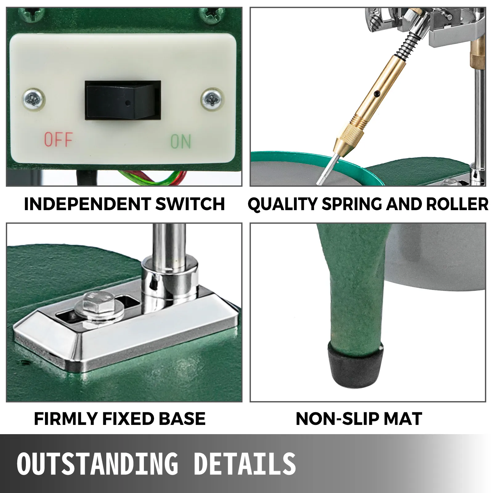 - Esta eficiente máquina pulidora está hecha de metal de alta calidad con una velocidad de rotación de hasta 2800 rpm. El manipulador flexible y conveniente se puede operar en múltiples ángulos y se puede ajustar hacia arriba y hacia abajo, se aplica ampliamente para moler y pulir diversas piedras preciosas.