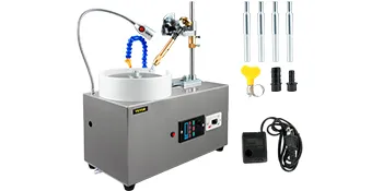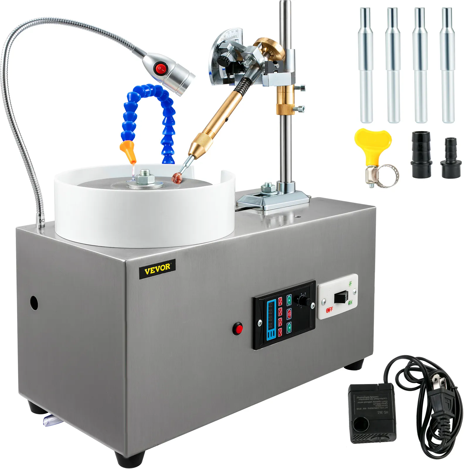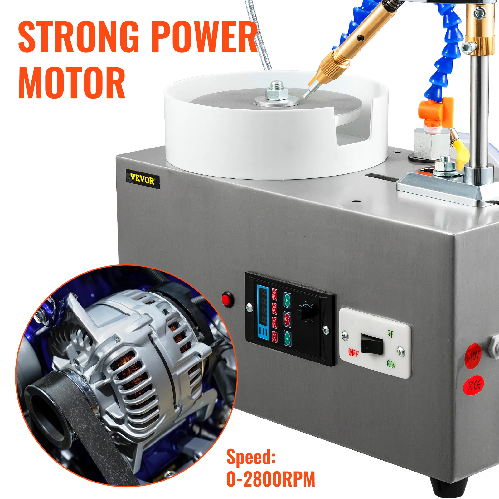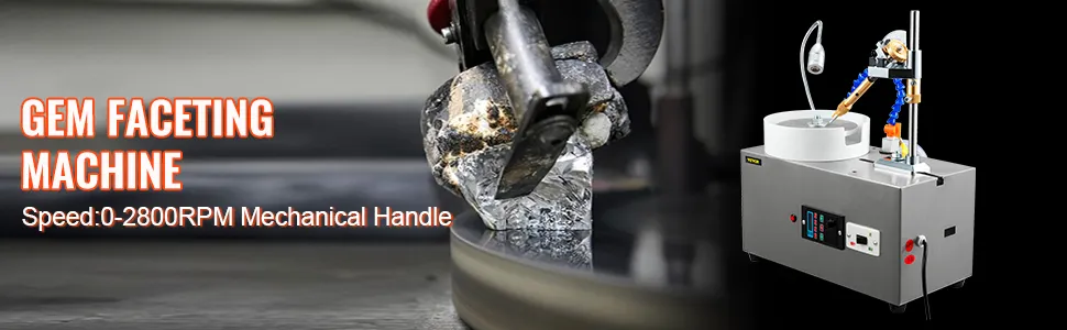 La máquina pulidora está hecha de metal de alta calidad y es duradera. La velocidad es de hasta 2800 rpm. El manipulador se puede operar en múltiples ángulos y se puede ajustar hacia arriba y hacia abajo; la operación es flexible y conveniente. La máquina cortadora de gemas es adecuada para esmerilar y pulir.