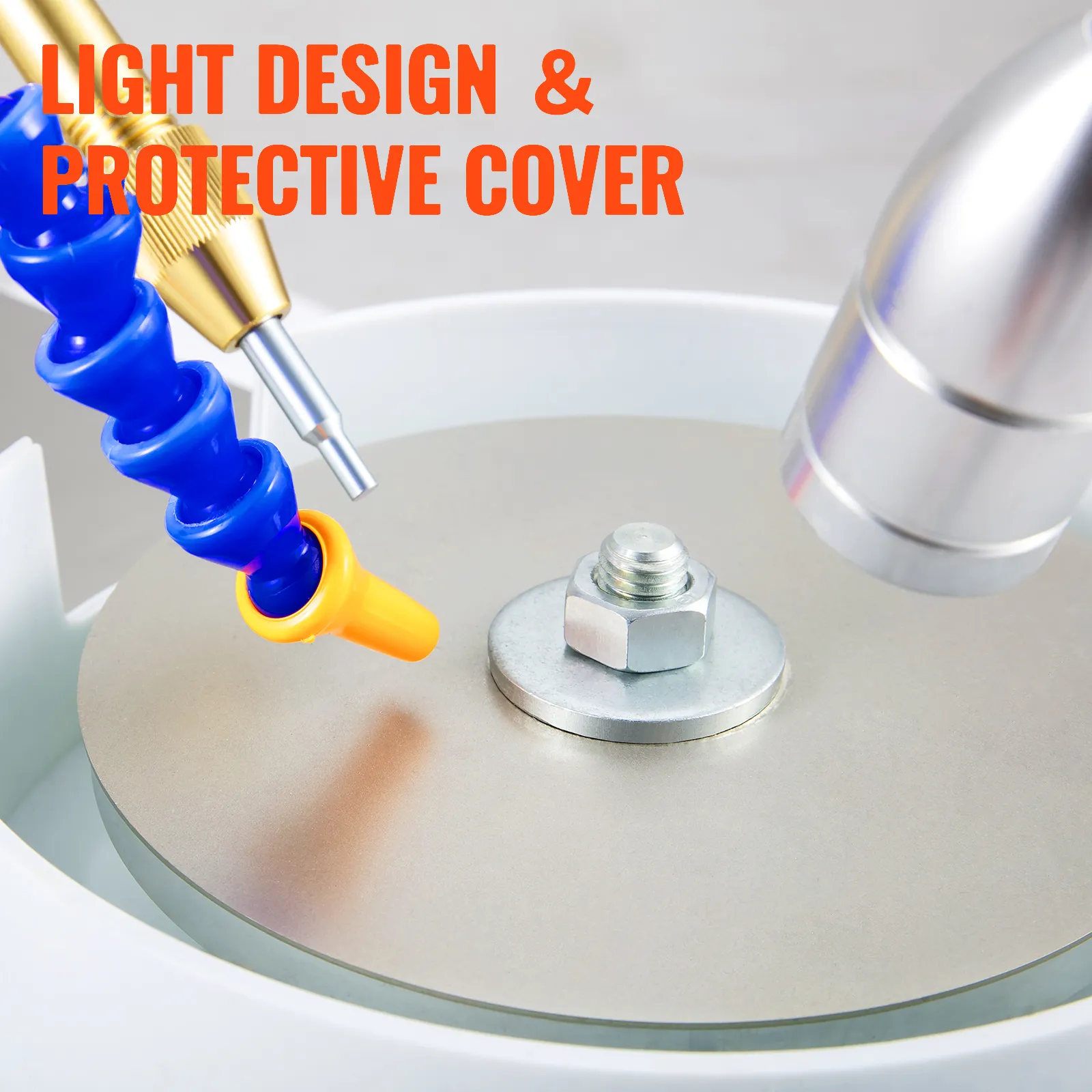 Equipado con una luz que puede iluminar cada rincón, interruptor independiente, seguro y conveniente; Diseño de bomba para facilitar el suministro de agua durante el pulido; Cubierta protectora para evitar salpicaduras y proporcionar un entorno de trabajo limpio y ordenado.