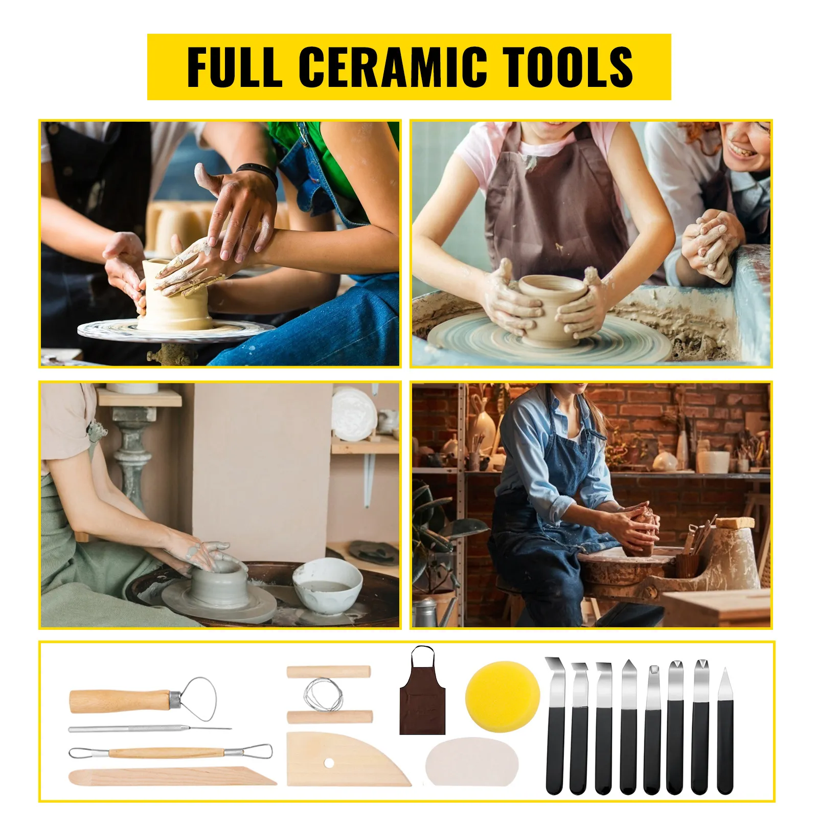 Se incluye un juego de tallado de 16 piezas para que pueda recortar sus trabajos. Puede ser ampliamente utilizado en la enseñanza escolar, tiendas de bricolaje de cerámica, estudios de cerámica y bricolaje doméstico, satisfaciendo tanto a profesionales como a aficionados.